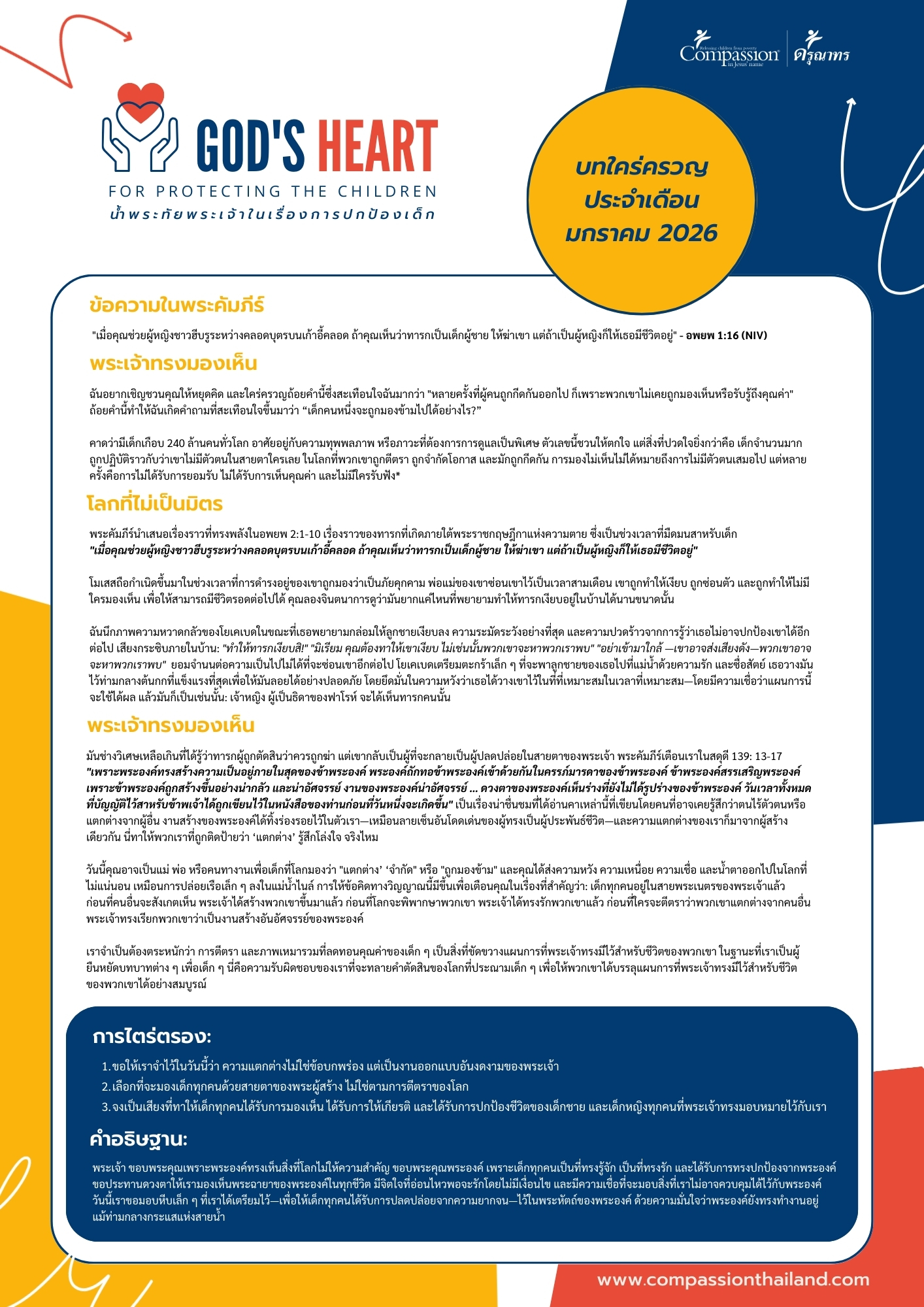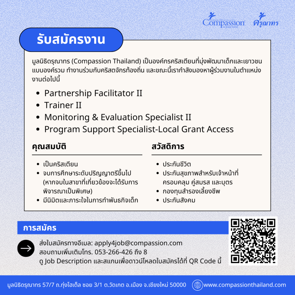มูลนิธิดรุณาทร หรือ คอมแพสชัน ประเทศไทย (Compassion Thailand) ครบรอบ 55 ปี แห่งพันธกิจการพัฒนาเด็กและเยาวชน ภายใต้ยุทธศาสตร์หลัก “การพัฒนาเด็กและเยาวชนแบบองค์รวมแก่เด็กยากจนด้วยการเป็นคู่มิตรกับคริสตจักรและผู้สนับสนุน” ซึ่งเป็นหัวใจสำคัญในการดำเนินงานตลอดระยะเวลาที่ผ่านมา โดยได้มุ่งมั่นในการยกระดับคุณภาพชีวิตของเด็กและเยาวชนที่อยู่ในสถานการณ์ความยากจน ให้ได้รับการพัฒนารอบด้าน ทั้งด้านการศึกษา สุขภาพ สังคมอารมณ์ และคุณธรรม เพื่อสร้างโอกาสและความหวังในชีวิต สู่การเติบโตอย่างมีศักยภาพและมีคุณภาพชีวิตที่ดีขึ้น